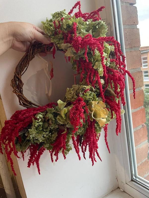 Диаметр венчика 25 см Состав стабилизированный амарант, рисунелла, сухая гортензия,