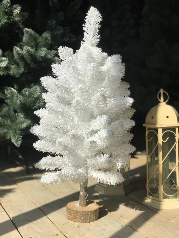 Стильная белая елка HVOYA Elegant на корню высотой 65 см поможет создать оригинальный и креативный дизайн праздничного интерьера. Елка изготовлена из высококачественной ПВХ-пленки, что обеспечивает долговечность и привлекательный внешний вид. Добавляет елке шарма необычный ствол, оригинальная подставка в виде натурального деревянного пня и напыление искусственного снега на ветках. Елка идеально подойдет для создания праздничного настроения дома и на работе. Вы можете поставить елку на стол, комод, подоконник или прикроватную тумбу и настроение праздника будет сопровождать вас с самого утра, или украсить ею свое рабочее место.
