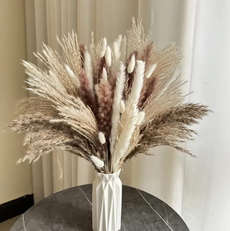 Букет сухоцветов из пампасной травы Бохо-шик Элегантный декор для вашего интерьера! Описание товара: Вишуканий букет из натуральных сухоцветов пампасной травы и кроличьих хвостиков в бежевых и белых тонах. Идеальный выбор для создания атмосферы уюта дома, на свадьбах, вечеринках и других мероприятиях. Характеристики: - Высота: 44 см - Количество веток: 59 - Дизайн: Комбинация бежевых и белых оттенков, добавляющих изысканности и естественной красоты. - Без вази: Прекрасно смотрится на столе как самостоятельное украшение. Преимущества: - Естественная красота: Натуральные сухоцветы дарят интерьеру тепло и стиль. - Многофункциональность: Подходит для декора дома, свадеб или вечеринок. - Долговечность: Натуральные материалы сохраняют свой вид долгое время. - Удобство: Отлично сочетается с любым интерьером, создавая уютную атмосферу.