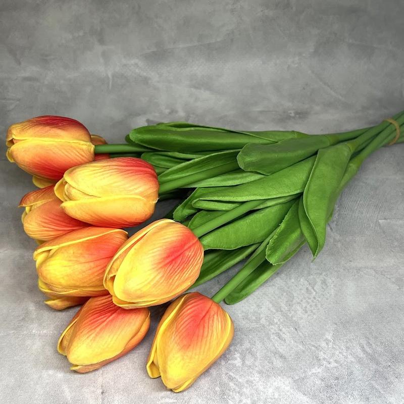 Букет з 10 штучних тюльпанів (латекс) довжина 33 см, бутон ≈4,5 см, помаранчевий , арт 019...