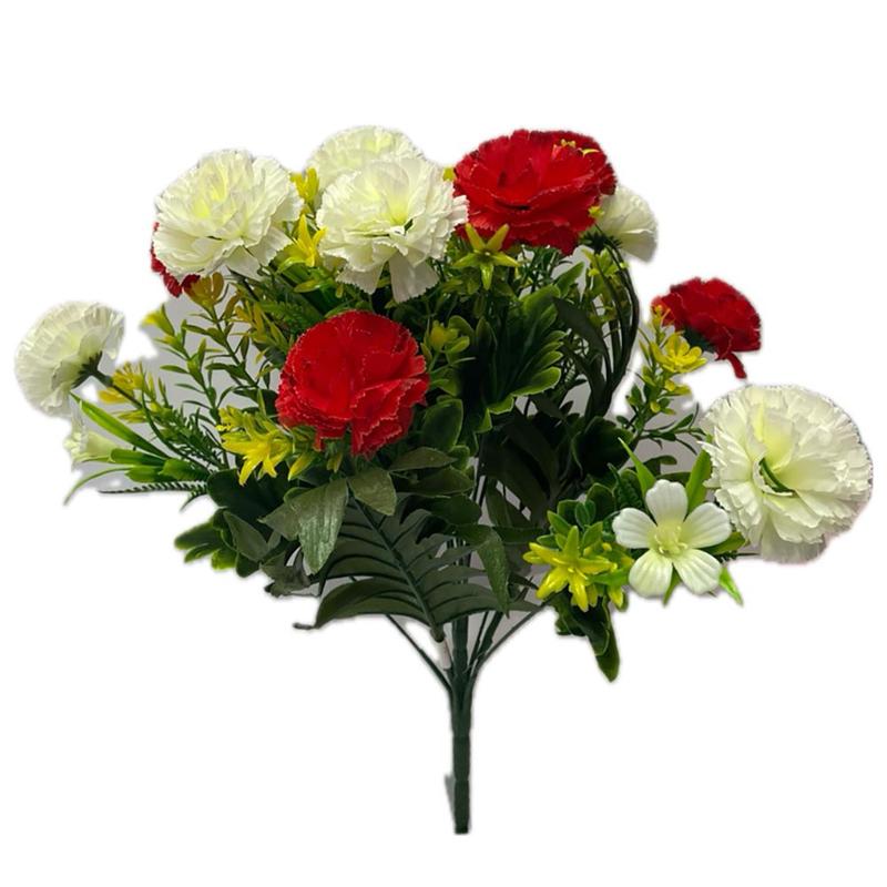 Букети Без бренду Композиція з червоної та білої гвоздики, доповнена зеленими листочками, є чудовим прикладом контрасту та гармонії. Червона гвоздика символізує пристрасть і емоційну глибину, а біла додає нотки чистоти та спокою, створюючи враження елегантного балансу між двома кольорами. Зелені листочки надають композиції свіжості та природної легкості, підкреслюючи красу квітів і додаючи їм виразності. Така комбінація виглядає надзвичайно естетично і гарно виглядає як самостійно, так і в складі різноманітних квіткових аранжувань. Ця гвоздика з червоними та білими пелюстками стане чудовим доповненням до будь-якого інтер'єру або святкової події. Її виразні кольори і листя символізують гармонію, силу почуттів і елегантність, створюючи атмосферу затишку та святковості.