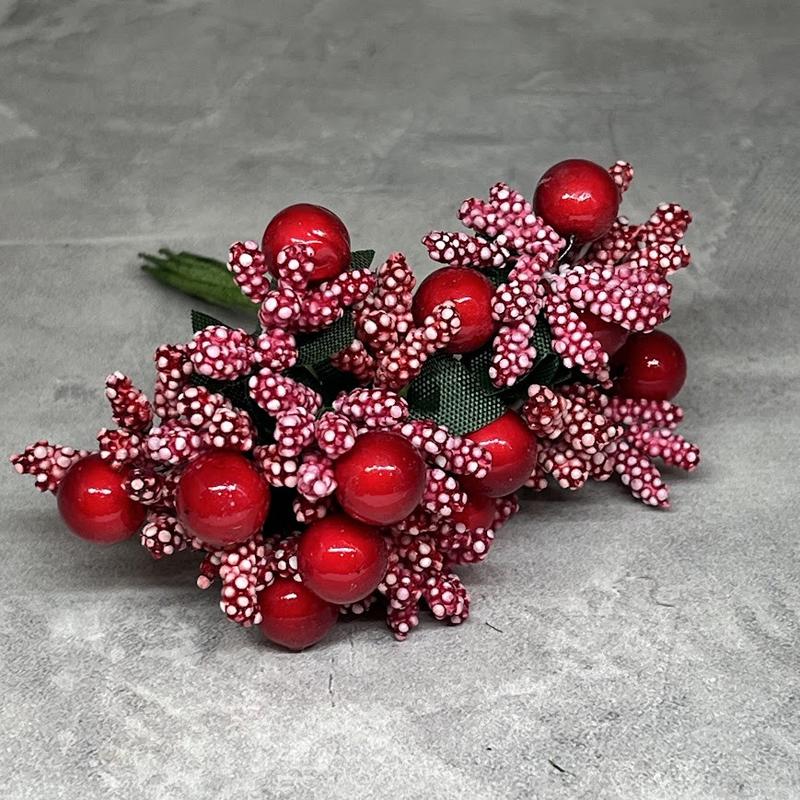 Тычинка для рукоделия с ягодами (добавка для цветов), цвет-красный, арт 018752, букет (12...