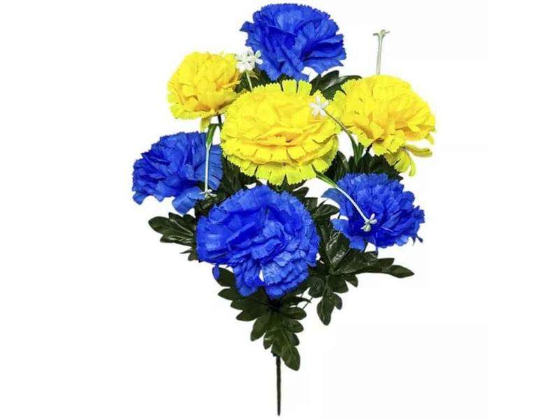 Букет искусственных цветов шелк гвоздики h-48см г-7 желто-голубой (4шт/уп) арт.8106/1 тм к...
