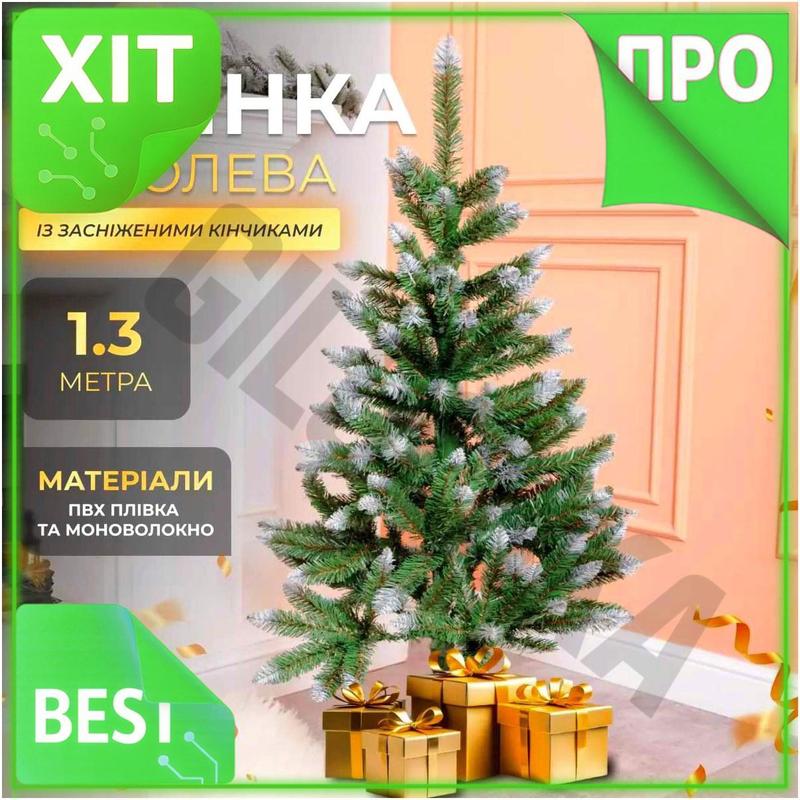Ve елка искусственная сосна 130 new version см зеленая с белыми кончиками пвх новогодняя е...
