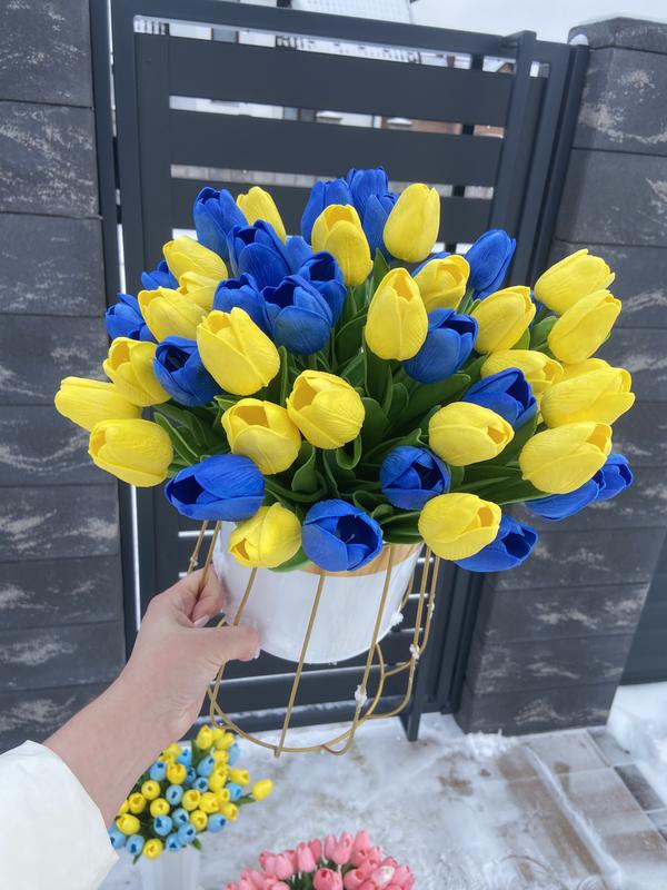 Тюльпани латексні (не живі) виглядають як справжні квіти !!!! Найвищоі якості! максимально реалістичні та наближені до живої рослини Можна ставити в приміщенні та на вулиці Може бути весільна і жалобна тематика Рекомендую. Внаявності кольори: білий, червоний, оранжевий, фіолетовий,жовтий, синій, голубий, рожеві , темно рожеві , світло фіолетові