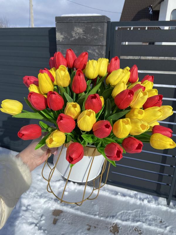 Тюльпани латексні (не живі) виглядають як справжні квіти !!!! Найвищоі якості! максимально реалістичні та наближені до живої рослини Можна ставити в приміщенні та на вулиці Може бути весільна і жалобна тематика Рекомендую. Внаявності кольори: білий, червоний, оранжевий, фіолетовий,жовтий, синій, голубий, малиновий