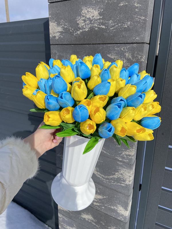 Тюльпани латексні (не живі) виглядають як справжні квіти !!!! Найвищоі якості! максимально реалістичні та наближені до живої рослини Можна ставити в приміщенні та на вулиці Може бути весільна і жалобна тематика Рекомендую. Внаявності кольори: білий, червоний, оранжевий, фіолетовий,жовтий, синій, голубий, малиновий