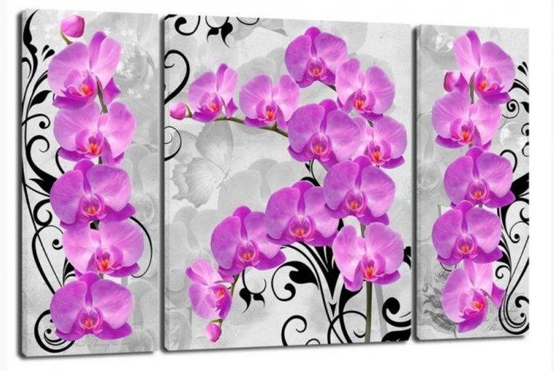 Модульная картина на холсте на стену для интерьера/спальни/офиса dk триптих орхидеи 50x80...