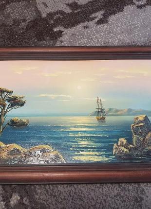Картина 28×50 "Гавань, Фактура штукатурка,лия.Двп в подрамнике