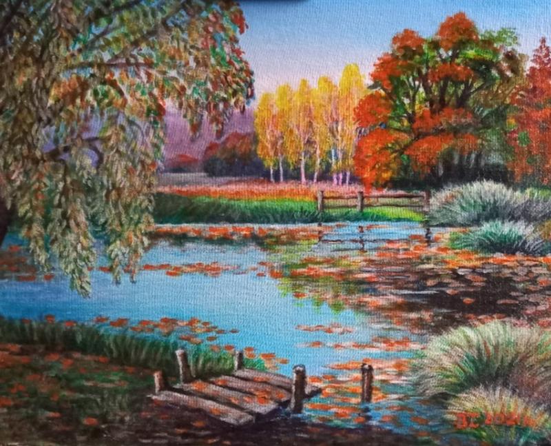 Чарівний осінній пейзаж. Картина , фарби акрил, матеріал полотно на картоні, розмір 40×50