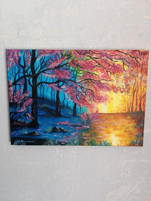 Продам картину "Ранок" краска акрил,холст на подрамнике,размер 25 на 35.Очень яркая картина...позитивная.. заряженный положительной энергией следующего рассвета. ..И будет весна)))