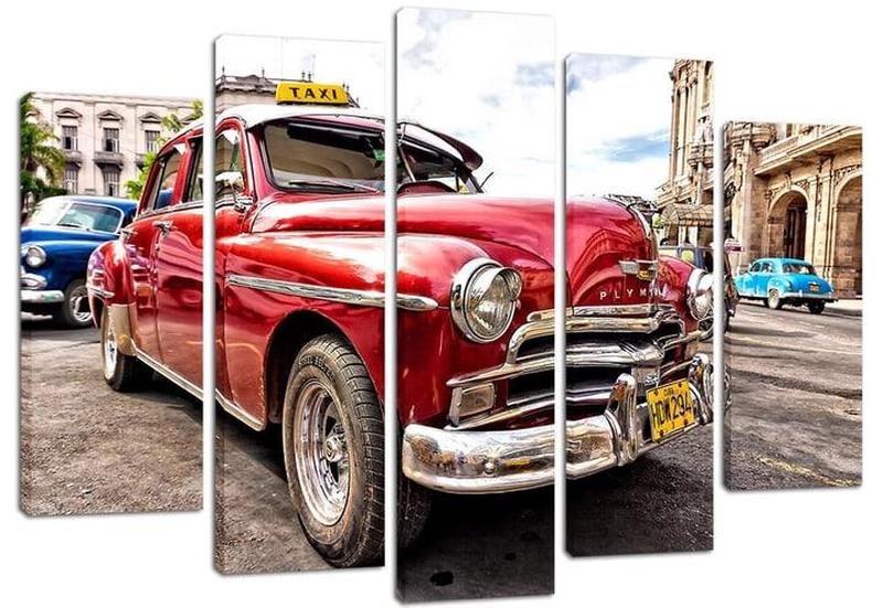 Модульная картина на холсте на стену для интерьера/спальни/офиса dk ретро такси 80x108 см...