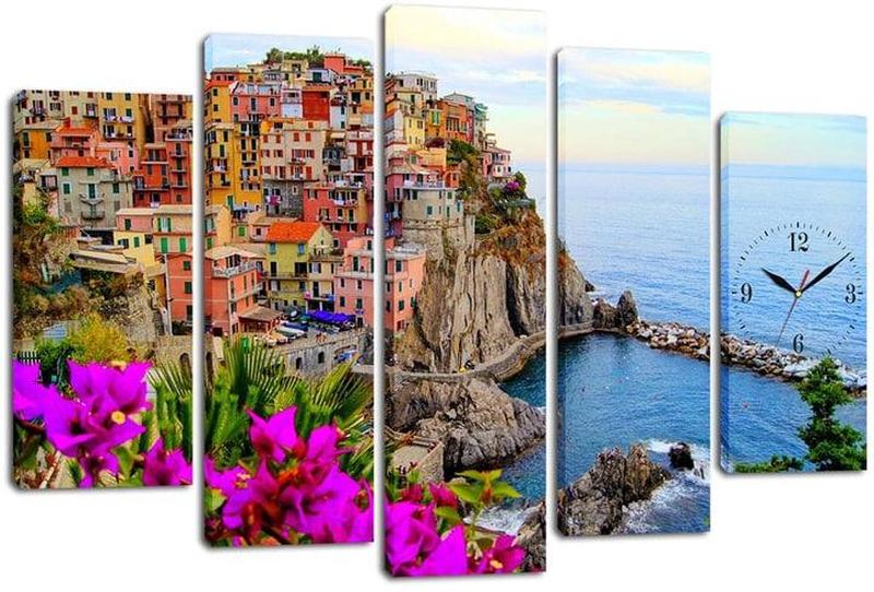 Модульная картина с часами dk город на берегу моря 80x108см (m5c-chf43)