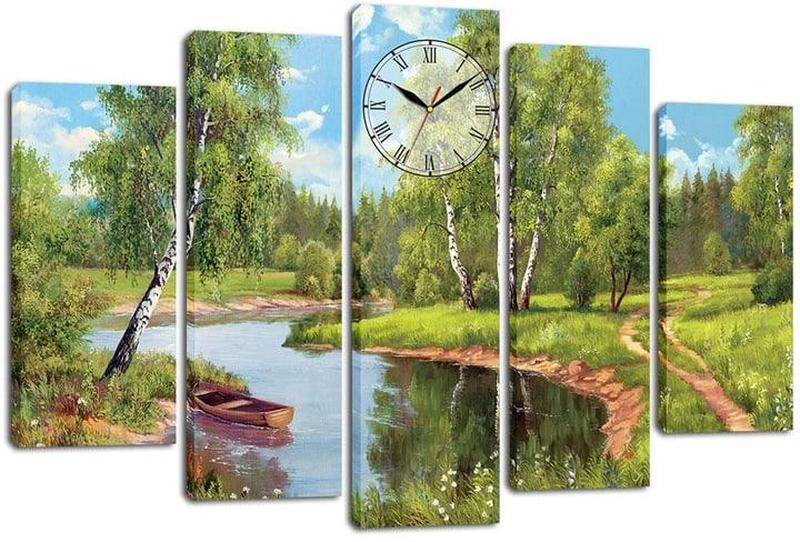 Модульная картина с часами dk березовая роща 80x108см (m5c-chf15)
