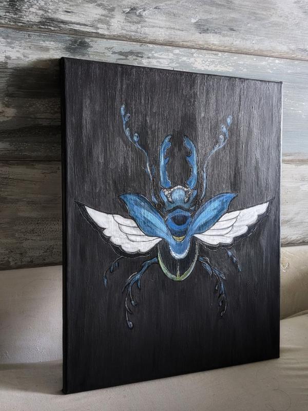 Холст на подрамнике 40х50 акриловые краски, лак. Голубая краска с металлическим эффектом