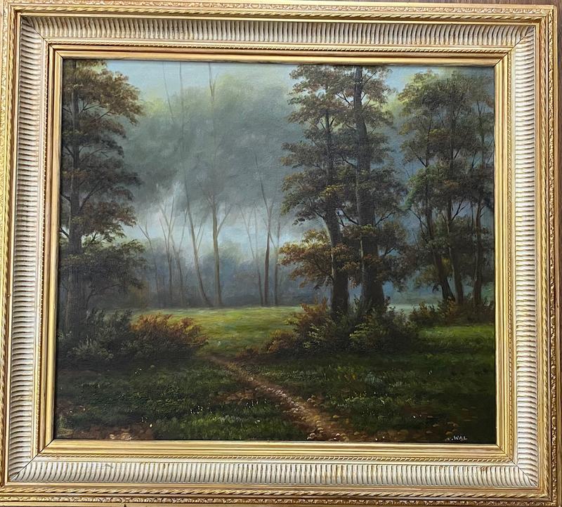 Ліс Бельгія, підписані L.Wal, (баронесся Leontine de Wal) XIX століття Розміри з рамою 70 х 63 см, без рами 57 х 49 см Картон, олія. Рама дерево.