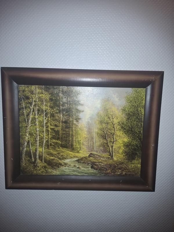 картина пейзаж в рамке 39х49. на рамке есть царапины. репродуция