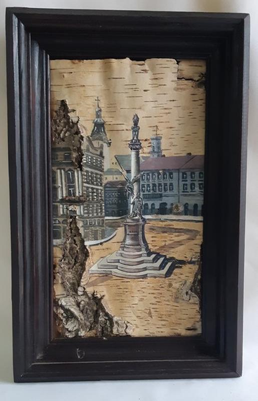 Картина на бересте Львів, пам'ятник А. Міцкевичу. 1999 г. Размеры: 36,5х23,5 ( 28,5х16).