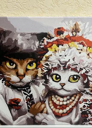 нарисована картина по номерам свадьбы украинских кошек, 40х50 см