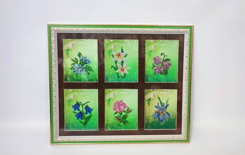 Картина вишитые бисером цветы, нарцисс, ирис, роза