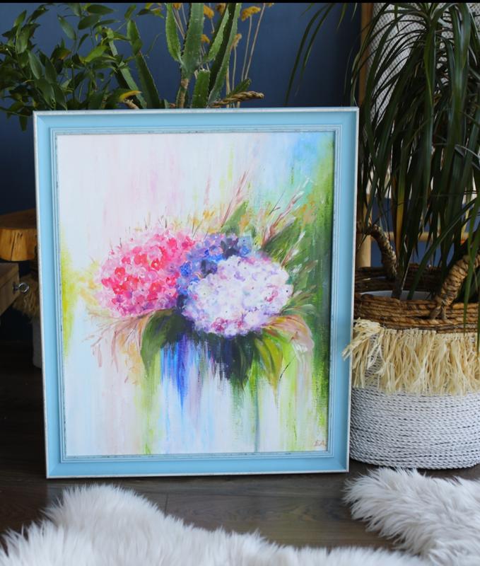 50×70см Акрил "Гортензії" Полотно натянуте на підрамник Рамка 6см Картини під замовлення💛 •Підбір картини і безкоштовна візуалізація •Швидкі терміни виконання •Якісні матеріали,сучасні техніки •Будь-які розміри та форми картин •Працюю офіційно фоп •Доставка по Україні та закордон Привіт, я Дарина і створюю картини за вашими ескізами, або запропоную варіанти, що підходять під Ваш інтер'єр.💫 В мене виключно ручна робота 👌 ЦІНА картини залежить від розміру та матеріалів З'явилось питання, звертайтесь в дірект 📩