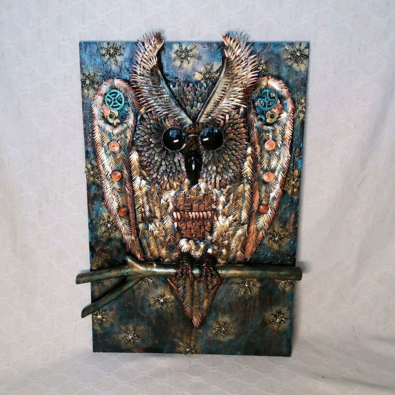 Вид картин: Об'ємні картини Тип картин: Оригінали Оформлення: Без рами Робота в стилі стімпанк, Розмір 40х60см. В єдиному екземплярі. Більше такої не існує. Матеріали: годинник, запчастини з комп'ютера, блискавки, металеві запчастини, дріт і тл..і тп..
