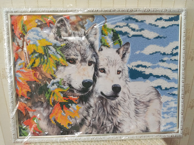 Продам картину Волки, вышитая чешским бисером, размер картины с рамкой 38,5х29см.