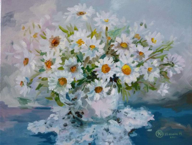 Вид картин: Живопис Тип картин: Оригінали Оформлення: На підрамнику Орієнтація: Горизонтальна Картина Ромашки 2021р.з полотно олія 35х45 Авторська робота написана за етюду