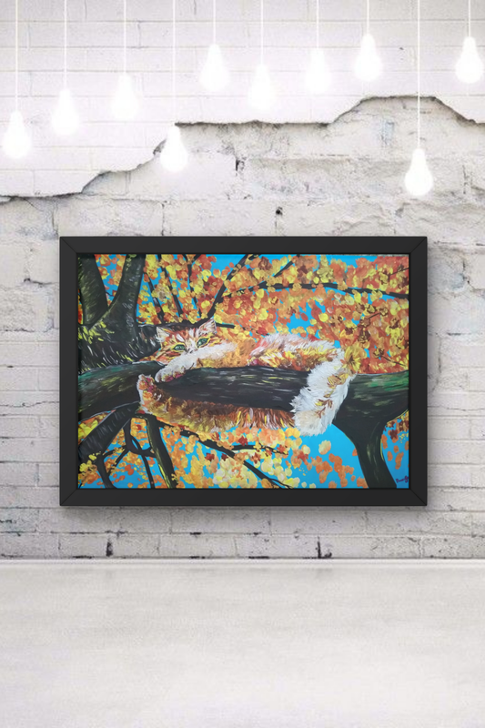 🍂 Картина «Осінь» — авторський живопис, 30×42 см (А3) «Осінь» — оригінальна картина, виконана гуашшю на акварельному папері формату А3. На роботі зображено рудого кота, який лежить на гілці дерева (ракурс знизу). Золоте осіннє листя майже зливається з шерстю тварини, і лише яскраві зелені очі чітко вирізняються на фоні теплої палітри. Картина створює атмосферу затишку, тиші та легкої загадковості. Без рамки — можна оформити під стиль вашого інтер’єру. ✨ Характеристики: Назва: «Осінь» Вид: живопис Тип: оригінал, ручна робота Техніка: гуаш Основа: акварельний папір Розмір: 30 × 42 см (А3) Орієнтація: горизонтальна Оформлення: без рами Стан: відмінний 🏡 Ідеально для: вітальні або спальні осіннього декору подарунка любителям котів колекції атмосферних авторських робіт