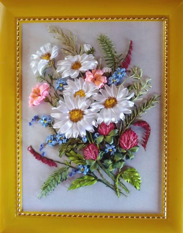 Чи чули ви коли, Як в Україні в полі, Шепочуть квіти польові? Про що вони на волі, Там між собою У травах гомонять? Мабуть, щось хочуть Нам розповісти. А може так вони За нас радіють, Бо квіти так цвісти У світі, більш ніде не вміють! Картина вишита атласними стрічками, бісером і шовком на якісному принті. Хто не любить польові квіти? Мабуть не знайдеться такої людини....Тому для подарунка- це прекрасний варіант чи то на день народження, на будь-який ювілей, на весілля або просто оновити інтер′єр своєї квартири!!Розмір 15*20см