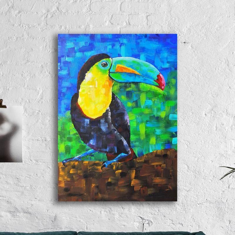 Тукан, 2020 Акрил, холст на картоне, 50х70 см Авторская техника