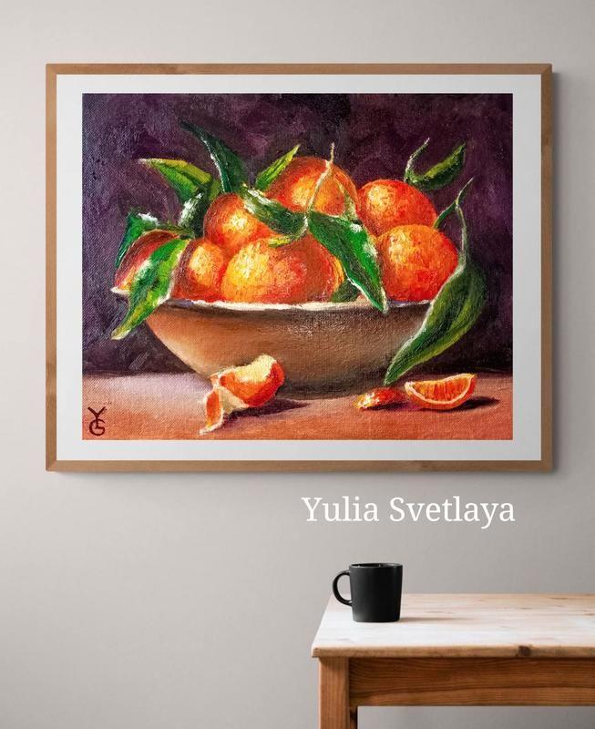 Натюрморт з апельсинами, натюрморт з фруктами, натюрморт з цитрусовими, зимовий натюрморт, картина з апельсинами, картина апельсини, картина фрукти. Полотно на двп 24*30 см, олійний живопис.