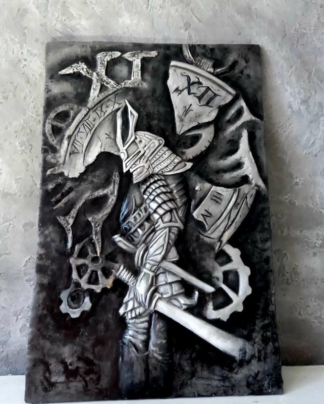 Вид картин: Об'ємні картини Тип картин: Оригінали Оформлення: Без рами Орієнтація: Вертикальна Об'ємна картина барельєф Самурай Розмір : 40×60 Матеріал: гіпс Виготовлення скульптур, елементів дэкора, пано, картини, барельєф під замовлення!!! Якісно і в короткі терміни!Відправка поштою