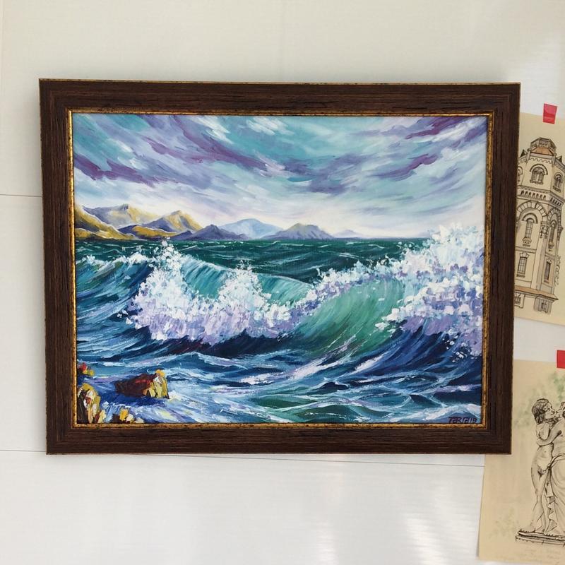 Картина "Хвиля" виготовлена олією в техніці мастихін (має об'єм і видимі мазки), на підрамнику, оформлена в дерев'яну раму. Розмір 30х40. Відсилання всією Україною Новою поштою або Укріплятою завдяки покупцям.