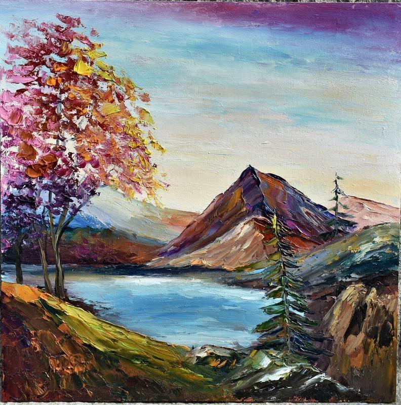 Живопись с горным пейзажем написана масляными красками с помощью кисти и мастихина. Картины от начала до конца создаются мной вручную. Для оформления на стену нужна рама. Материалы: масляные краски. Лак. Оргалит, размер 30х30 см. Продается без оформления в раму. Есть предложения по оформлению в раму. При получении посылки нужно будет просто повесить оформленную работу на стену. Сделаю дополнительные фотографии. Отвечу на вопросы, пишите. Рекомендации по уходу: Картину протирать от пыли сухой тряпочкой.