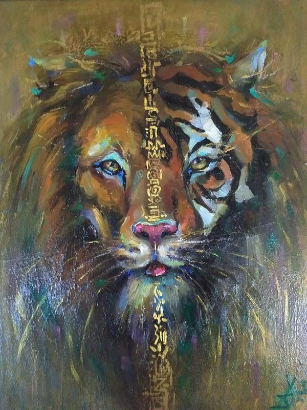 Двойственность. В каждом из нас есть раздвоение личности; у каждого из нас есть своя животная душа. А в твоей душе кто живет? Могу под заказ написать твою животную душу. Размер работы 40 на 60 сантиметров