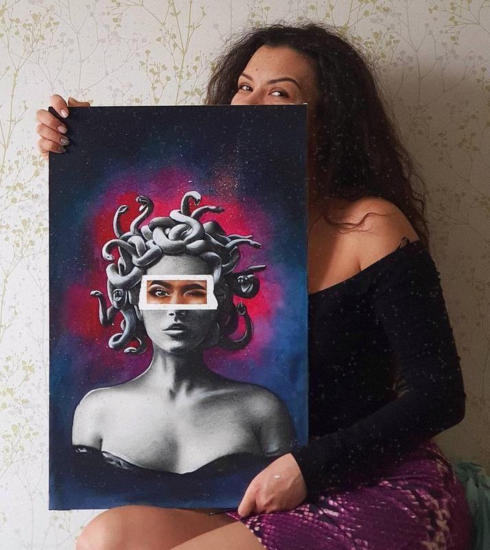 Картина в смешанной технике угля и акварель. Зафиксированная сверху жидким лаком