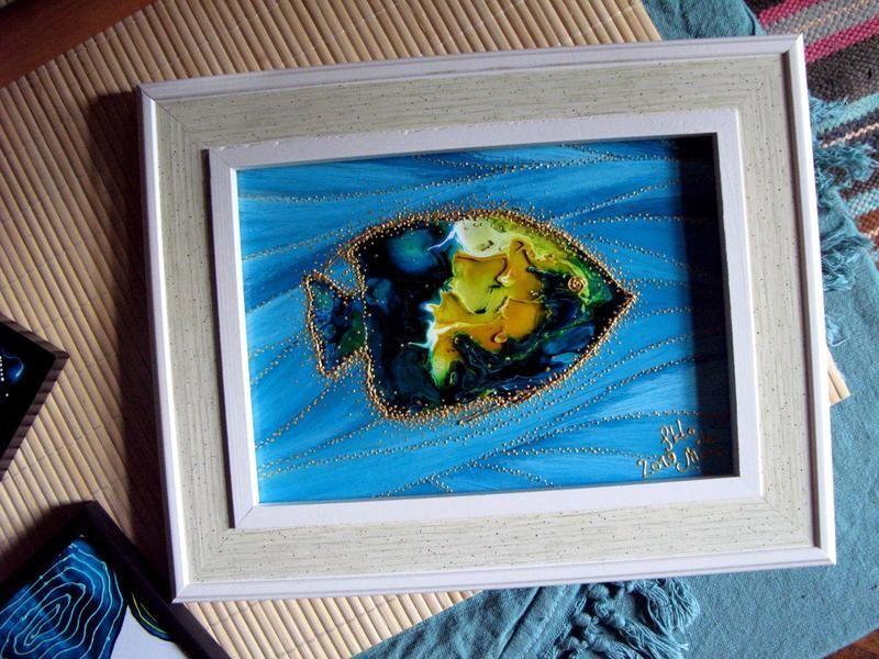 Картина в широкой раме. Витражная техника. Стильная, интересная работа. Дополнит любой интерьер. Шикарный подарок. размер картины 14х20 см, в раме 23х28см