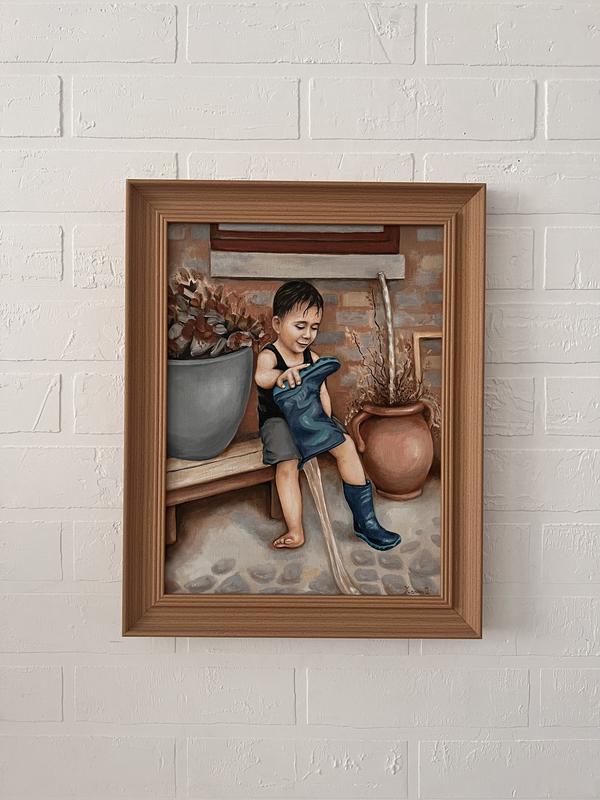 Назва: у бабусі Матеріал: полотно, олійні фарби, рамка Розмір: 30х40