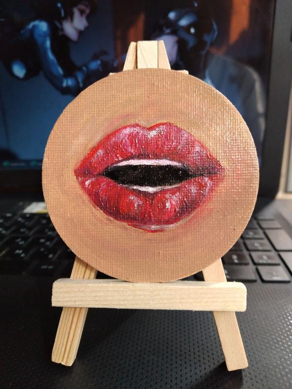 Виробник: Власне виробництво Вид картин: Живопис Тип картин: Оригінали Оформлення: На підрамнику Орієнтація: Вертикальна Картина маслом "Червоні губи". 8 см, картина продається разом з мольбертом. Гарна деталь для інтер'еру або туалетного столу.