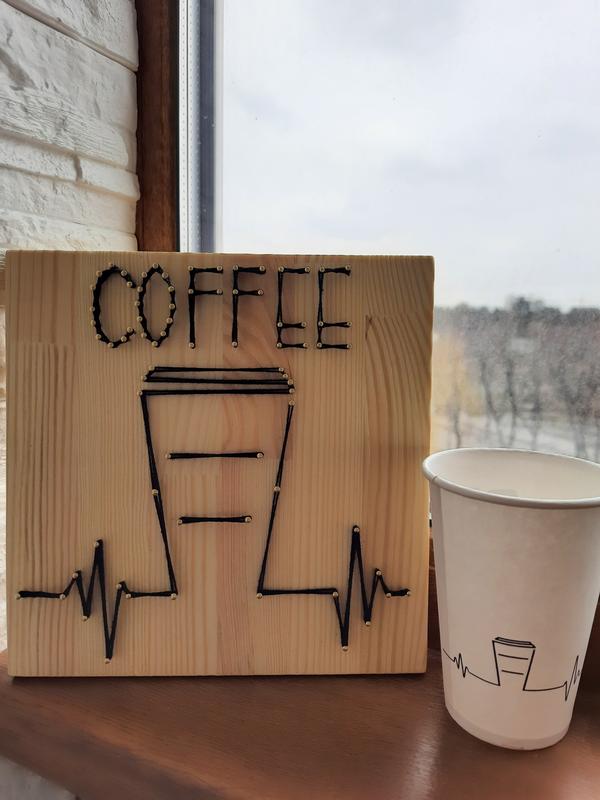 Картина в стилі стрінг-арт стане відмінним подарунком, а також елементом декору у вашому домі. Матеріали: сосновий щит (оброблений та покритий прозорим лаком), цвяхи і нитки. Розмір: 20*20см, товщина: 1,5 див. На звороті за бажанням можна прикріпити вушко, щоб повісити картину на стіну.