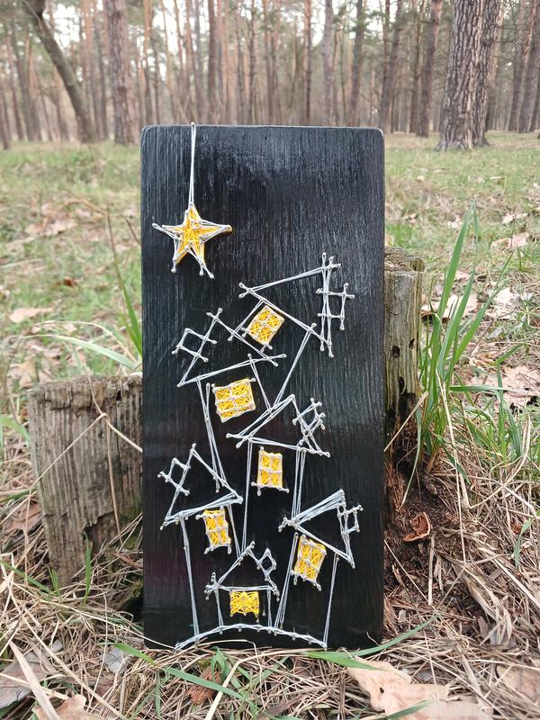 Картина стринг арт. картина из нитей и гвоздей. домики.