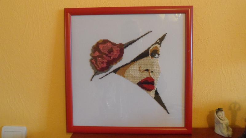 Картина у рамці дівчина в капелюсі бісер