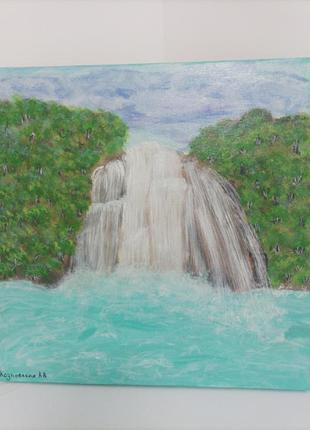 Картина Водопад намальована акрилом.Розмір 30*30,