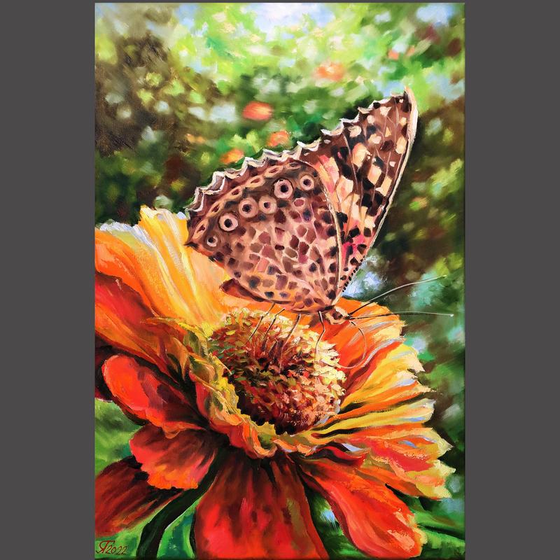 Картина масляными красками. Грунтованное полотно на подрамнике. Размер 60 на 40 см. Работа покрыта защитным лаком, имеет подвес и готова к использованию. Боковые стороны окрашены. Цвета могут немного отличаться. в зависимости от настроек монитора