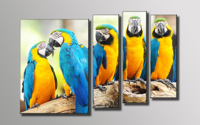 "пять попугаев" модульная картина на холсте для интерьера
