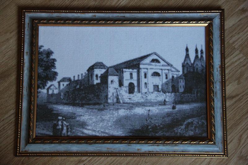 Картина 25*38 см С рамой 35*48 см Езуитский монастырь был построен в 1610 году, сегодня это улица Соборна, 17. За время существования здание было монастырем, коллегойумом, Церковью, там даже размещалась временно первая Винницка рада работачих депутатов, а уже сейчас там находится Национальный архив Винницской области.