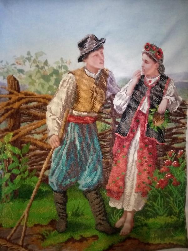 Картина "біля тину", розмір 42/62, вишивка бісером, ручна робота