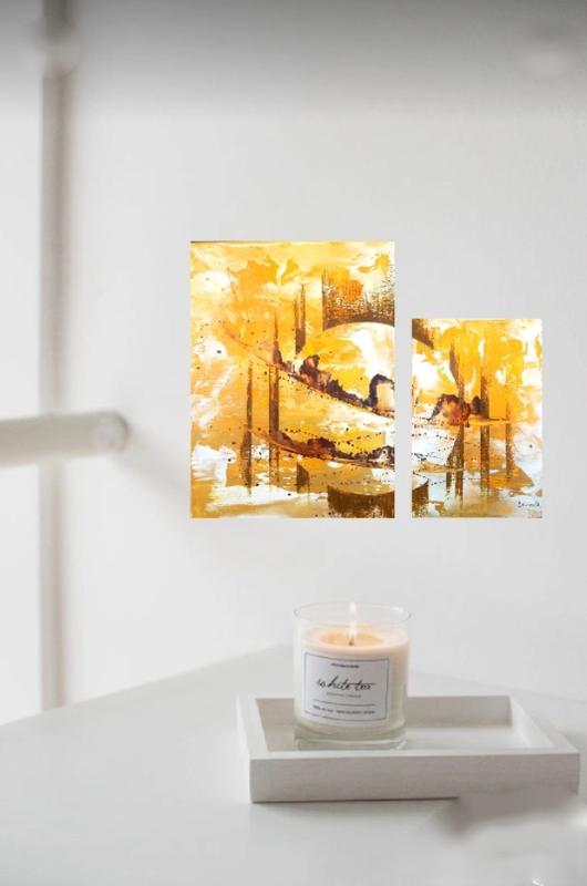 Диптих "Іспанський Захід Сонця ", (2020 р.) Розмір більшої- 29х39 см. Розмір меньшої- 19х29 см. Техніка- енкаустика. На підрамнику.