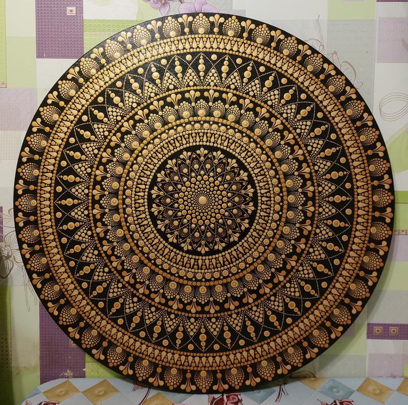 Продам изысканную интерьерную картину "Мандала Добробута", созданную акриловыми красками оригинальной капочной техникой акриловыми красками на художественном холсте. Диаметр полотна 80 см. Покрыта глянцевым лаком, придающим блеск и яркость цветам.
